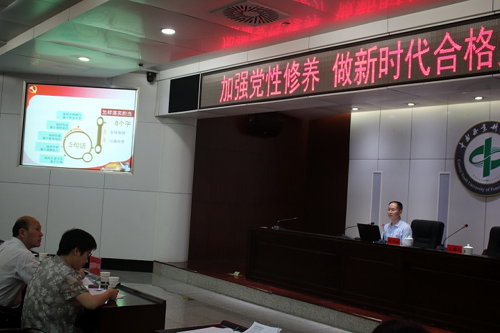 6月12日,学校党委书记赵运林同志在崇德楼四楼四会议室为发展规划与政策法规处党支部全体党员讲授党课。赵运林在题为《加强党性修养 做新时代合格党员》的党课中,就共产党员为什么要加强党性修养、新时代共产党员党性修养的主要内容和怎样提高党性修养三个方面进行了详细的讲解。并以“先”“力”“学”“忠”“品”“严”“实”“强”“洁”“省”“敢”“成”12个字概括了加强党性修养,做新时代合格党员的基本要求。